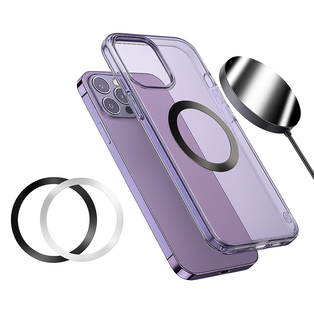 Conheça o anel magnético da placa do carregador sem fios MagSafe – o acessório perfeito para tornar o seu smartphone compatível com carregadores MagSafe e suportes magnéticos. Este anel metálico ultrafino proporciona uma ligação magnética forte entre o seu telemóvel ou capa e os dispositivos MagSafe, sem afetar o design ou a funcionalidade do seu aparelho.