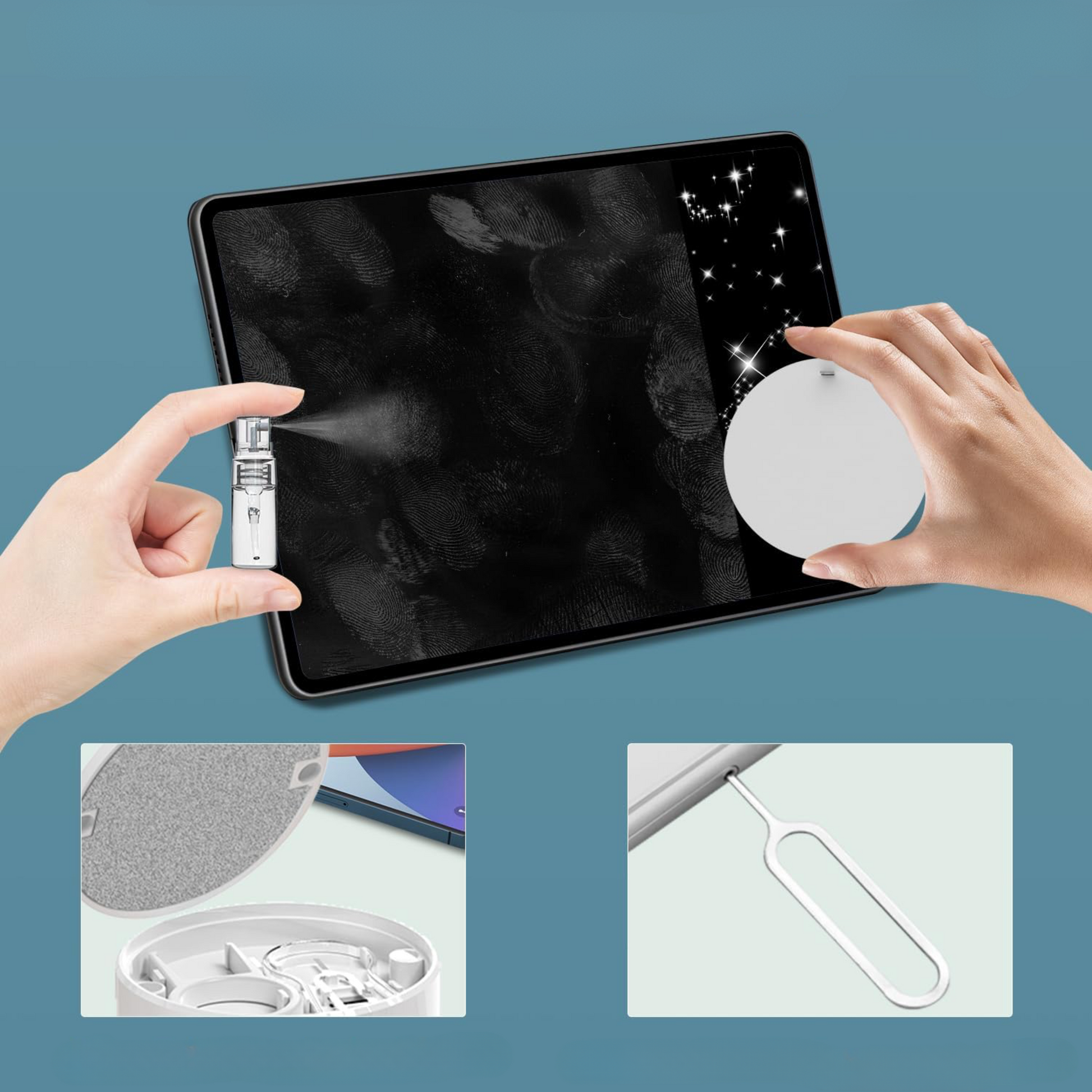 O Kit de Limpeza Sparkkit™ é a solução inteligente e completa para limpar o seu SnapStick™, teclado, auriculares, portátil e outros dispositivos eletrónicos. Com 21 ferramentas práticas – incluindo pontas de silicone, panos de flanela, extratores de teclas, escovas e esponjas – remove facilmente poeira, sujidade e manchas até nos cantos mais pequenos.